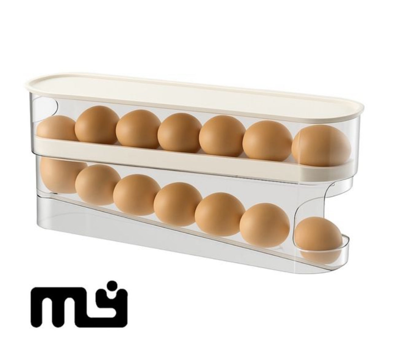 Organizador práctico y elegante de huevos diseñado para optimizar el espacio y mantener tu refrigerador ordenado.