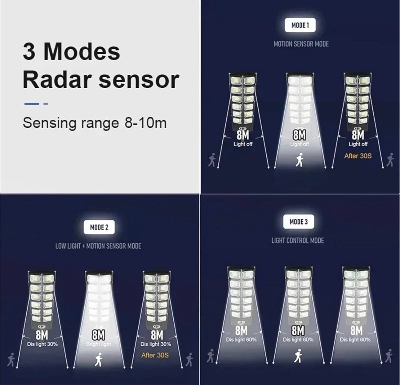 ✔️Sensor de Movimiento Inteligente: Detecta presencia en un amplio rango, encendiendo la luz a máxima intensidad cuando alguien se acerca y ahorrando energía cuando no hay actividad.