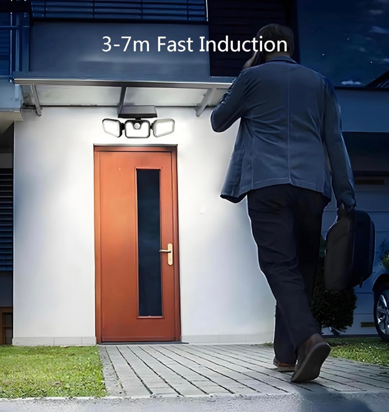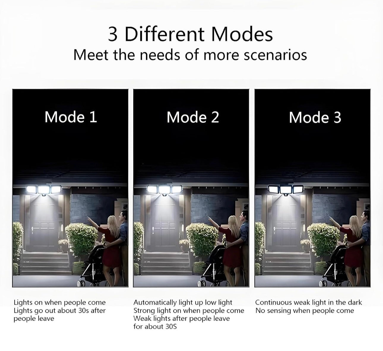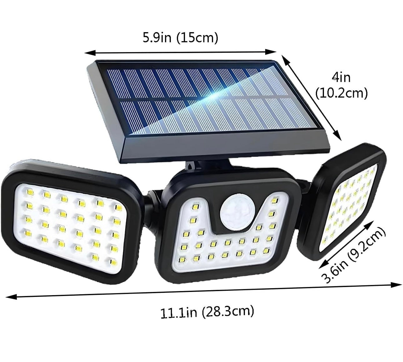 ✔️Iluminación LED Ultra Brillante: Equipado con tres paneles de LEDs de alta potencia, proporcionando una luz blanca intensa y uniforme, perfecta para cualquier ambiente exterior.
