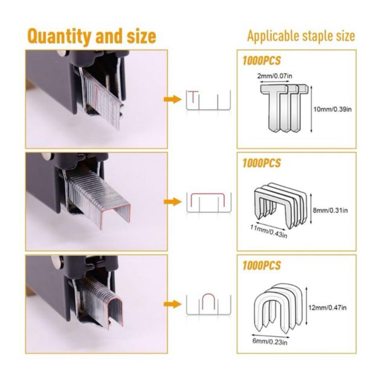 ▪️Compatibilidad Versátil: Soporta diferentes tipos y tamaños de grapas, incluyendo grapas tipo U, T y estándar, lo que la hace adaptable a diversas necesidades de trabajo.