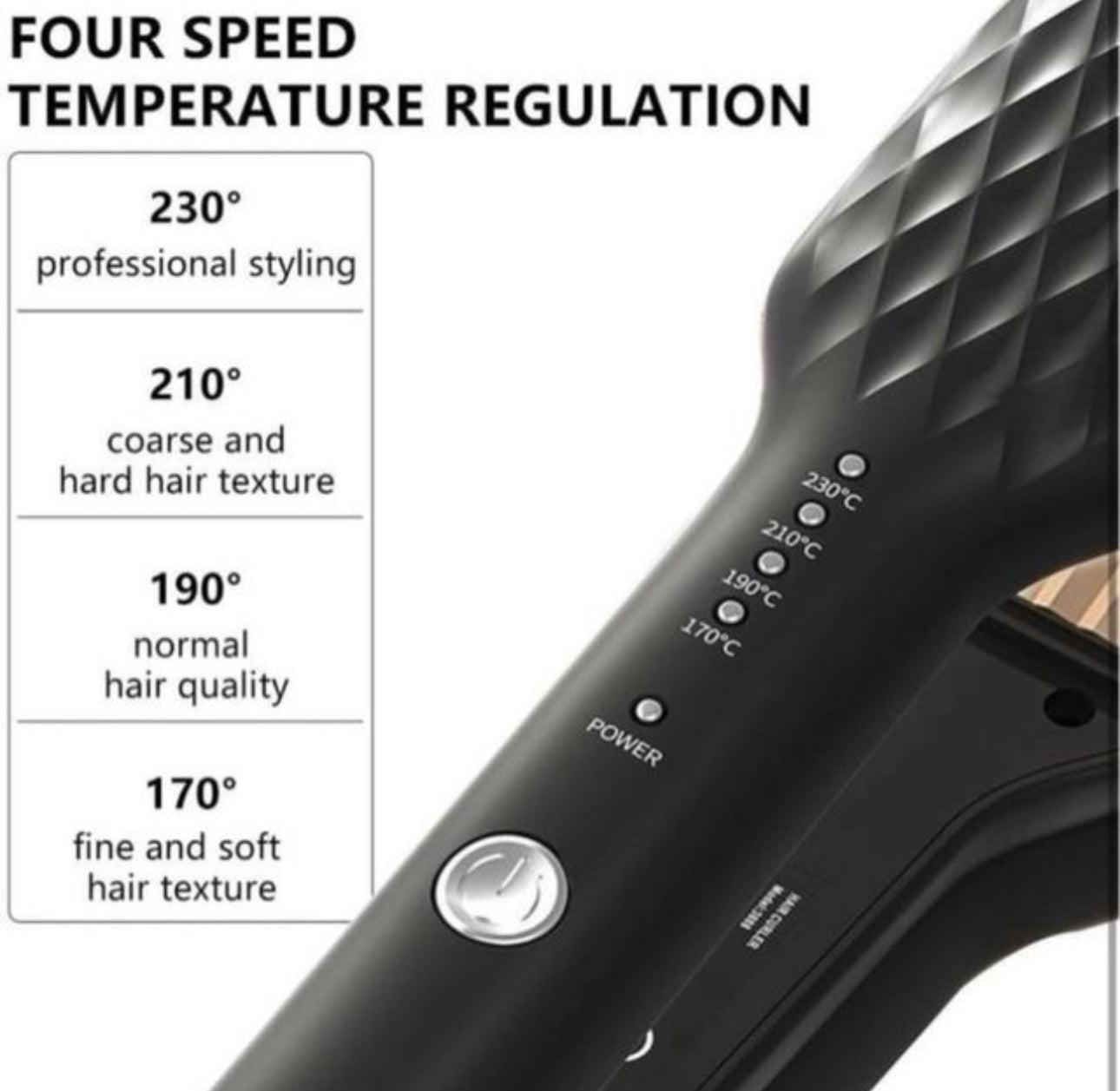 • Control de temperatura ajustable: Equipada con indicadores LED que permiten seleccionar entre múltiples niveles de calor (170°C, 190°C, 210°C, 230°C y 250°C), adaptándose a distintos tipos de