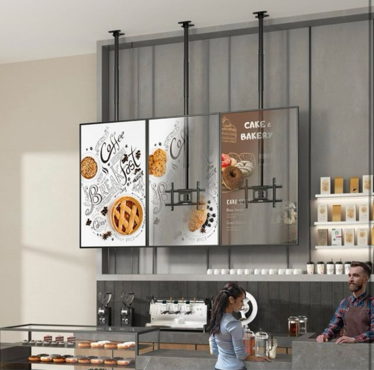 Perfecto para espacios donde el montaje de pared no es posible o donde se desea optimizar la visibilidad y el espacio, como oficinas, centros de conferencias, gimnasios y áreas comerciales.