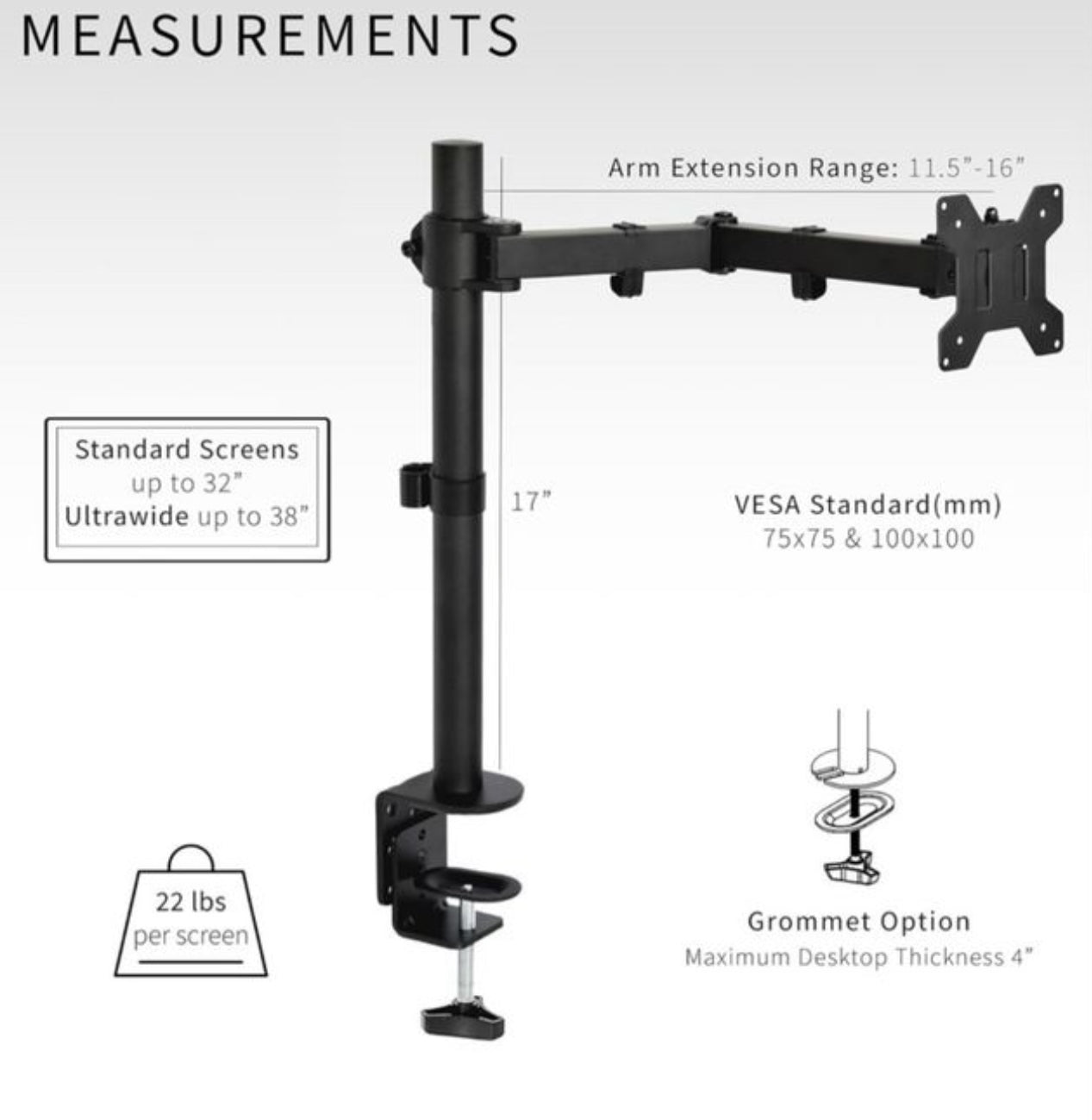 El soporte para monitor de 10'' a 32'' es una solución versátil y robusta para optimizar tu espacio de trabajo o entretenimiento. Diseñado con un brazo articulado ajustable, permite una instalación sencilla en escritorios con dos opciones de montaje: abrazadera o perforación directa. Ideal para usuarios que buscan ergonomía y personalización.